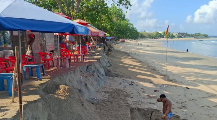 MANGUPURA, BALIPOST.com - Abrasi yang melanda Pantai Kuta semakin parah. Pantauan di lokasi pada Jumat (10/10), ombak besar menggerus area pasir di depan Pos...