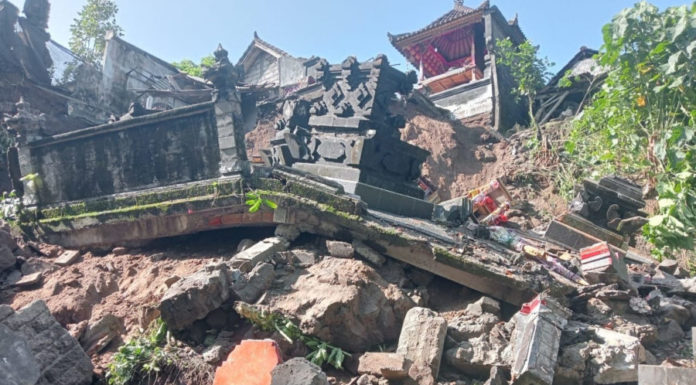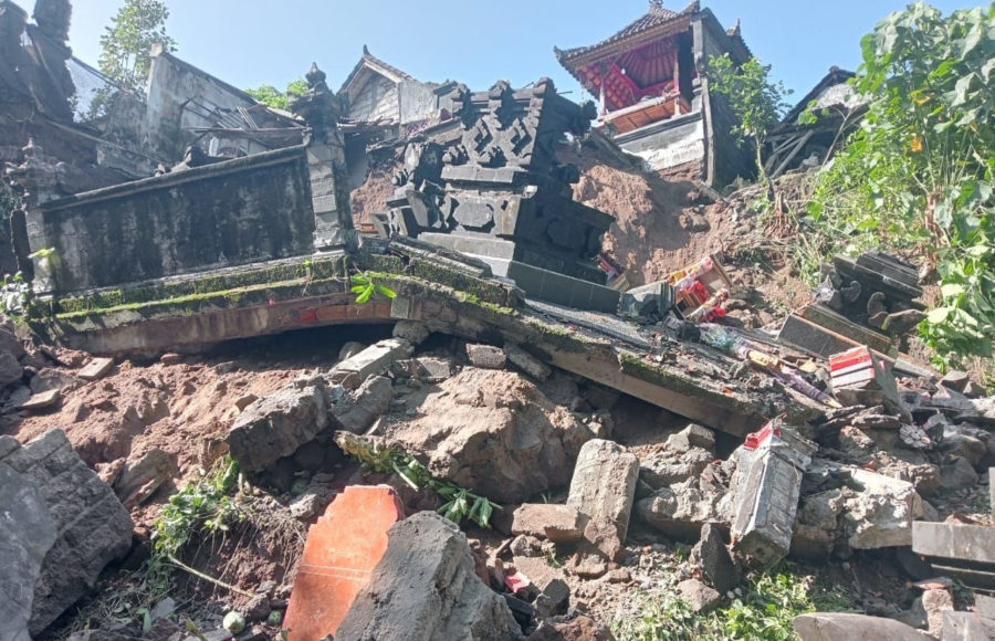 Cuaca Ekstrem di Gianyar, Tanah Longsor Hancurkan Tujuh Palinggih di Desa Lebih
