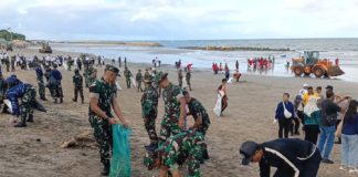 Sinergi TNI-Polri dan Mahasiswa Gelar Aksi Bersih Pantai di Saba dan...