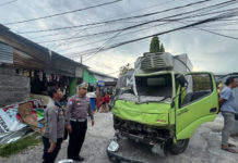 Truk Boks Tabrak Warung, Dua Orang Terluka