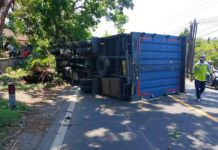 Diduga Sopir Ngantuk, Truk Box Terguling di Jalan Denpasar – Gilimanuk
