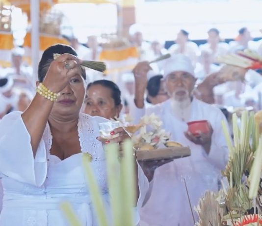 Jelang HUT Kemerdekaan RI, Duplikat Bendera Merah Putih Di-“Pasupati” di Besakih