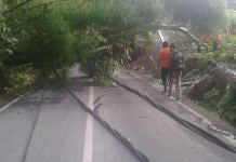 3 Tiang Listrik Tumbang Tutup Akses Jalan di Keliki