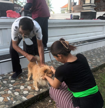 GIANYAR, BALIPOST.com - Puluhan anjing yang ada di Desa Puhu, Kecamatan Payangan, Gianyar, dilakukan vaksinasi dan eliminasi. Upaya pencegahan rabies ini dipusatkan di Pondokan...