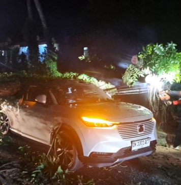 Hujan Lebat dan Angin Kencang Melanda, Dua Mobil Tertimpa Pohon di Puspem Badung