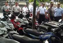 DENPASAR, BALIPOST.com - Tim gabungan kepolisian dan dishub menggelar operasi gabungan di Terminal Ubung, Denpasar, Senin (23/10). Saat melakukan penyisiran ke belakang terminal, petugas...