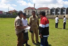 DENPASAR, BALIPOST.com - Delegasi PSSI Pusat yang diwakili Head of Football Infra Structure Safety Security Nugroho Setiawan bersama utusan Kementerian PUPR serta jajaran KONI Bali...