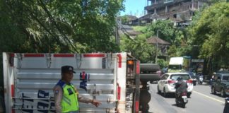 Hindari Motor yang Menyalip, Truk Box Terguling di Jembatan Yeh Nu...