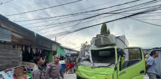 Truk Boks Tabrak Warung, Dua Orang Terluka
