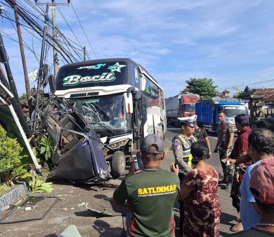 Tabrak Kendaraan Parkir, Mobil Terguling di Sempidi
