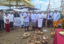 SEMARAPURA, BALIPOST.com - Upacara Tawur Agung Labuh Gentuh, Pangruak Bumi, Bhumi Sudha, Panegteg Jagat, dan Pitra Dekot yang digelar di kawasan Pusat Kebudayaan Bali...