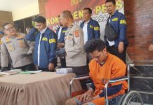 Pelaku pencabulan siswi SD diamankan di Polres Banyuwangi, Senin (11/12). (BP/udi)
