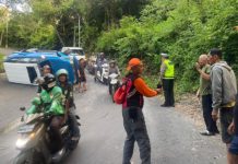 SINGARAJA, BALIPOST.com – Sembilan penumpang truk menjadi korban kecelakaan lalulintas (Lakalantas) akibat out of control (OC) di Jalan Singaraja-Pelapuan, kilometer (KM) 35, wilayah  Desa Pelapuan, Kecamatan Busungbiu, Selasa (14/5). Para penumpang yang merupakan sekaa Kesenian Jegog asal Jembrana itu mengalami luka serius karena truk yang ditumpangi terbalik di lokasi kejadian.