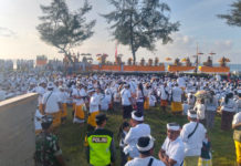 TABANAN- BALIPOST.com – Usai sudah prosesi melancarkan pewayangan Ida Batara Kahyangan Jagat Luhur (KJL) Natar Sari Apuan, Baturiti Tabanan ke jabakuta sisi kangin selama 42 hari sejak Galungan lalu. Prosesi dalam rangka ngrastiti jagat beserta isinya itu diakhiri dengan upacara Melasti di Segara Batu Bolong, Canggu Badung, Rabu (4/9) pagi ini.