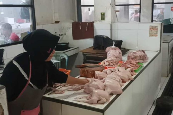 Menurutnya, penjualan saat ini menurun drastis, salah satu pemicunya menjamurnya pedagang daging ayam yang berjualan di luar pasar. “Kalau harga jual masih stabil, tapi omset jauh menurun karena pedagang di dalam pasar dikalahkan pedagang daging ayam yang menjamur di pinggir jalan-jalan,” keluhnya.