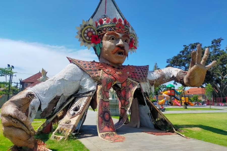 Sudah Rusak, Patung Anyaman Bambu Di Alun Alun Masih Dipajang 1