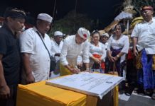 Turut hadir, Ketua TP PKK Badung Nyonya Seniasih Giri Prasta bersama jajaran organisasi kewanitaan Kabupaten Badung, jajaran kepala OPD di lingkungan Pemkab Badung, beserta camat se-Badung. Dalam upacara bhakti penganyaran tersebut, Pemkab Badung menghaturkan punia sebesar Rp100 juta. (Adv/balipost)