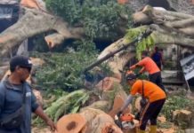 Kompol I Nyoman Sukadana menambahkan dahan pohon beringin tersebut patah dikarenakan intensitas curah hujan yang tinggi disertai angin kencang dan kondisi dahan pohon yang rapuh. (Wirnaya/Balipost)
