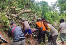 Saksi mata yang merupakan warga setempat, langsung menghubungi Badan Penanggulangan Bencana Daerah (BPBD), Bhabinkamtibmas, serta petugas PLN karena dahan pohon juga menimpa jaringan kabel listrik.
