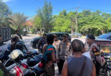 Petugas dari Polsek dan Brimob Gilimanuk melakukan penanganan dengan membersihkan pohon yang melintang hingga menimpa truk tersebut.