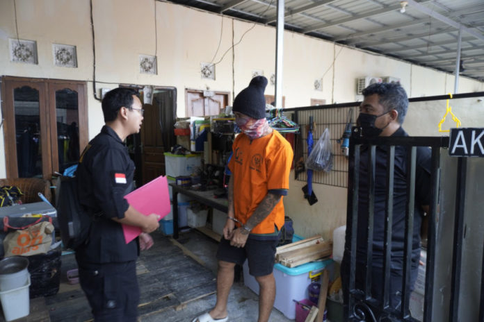 Petugas BNNP Bali saat membawa pelaku dibawa ke TKP tempat tinggalnya. (BP/istimewa)