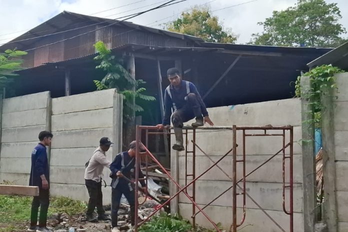 Tembok yang menutup akses warga saat dibongkar pekerja yang dikerahkan oleh pihak GWK, Rabu (1/10). (BP/kmb)