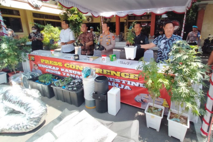 Kali ini polisi menggerebek clandestine narkotika jenis ganja secara hidroponik di sebuah rumah kontrakan di Jalan Bina Kusuma IV, Desa Ubung Kaja, Denpasar Utara, Rabu