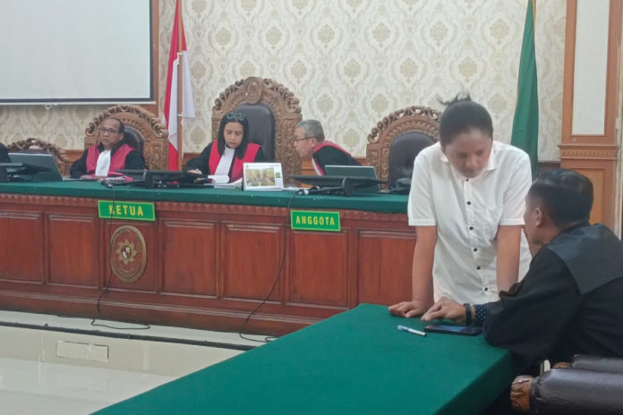 Terdakwa Ni Wayan Budiastuti usai jalani sidang vonis di Pengadilan Tipikor Denpasar.(BP/asa)