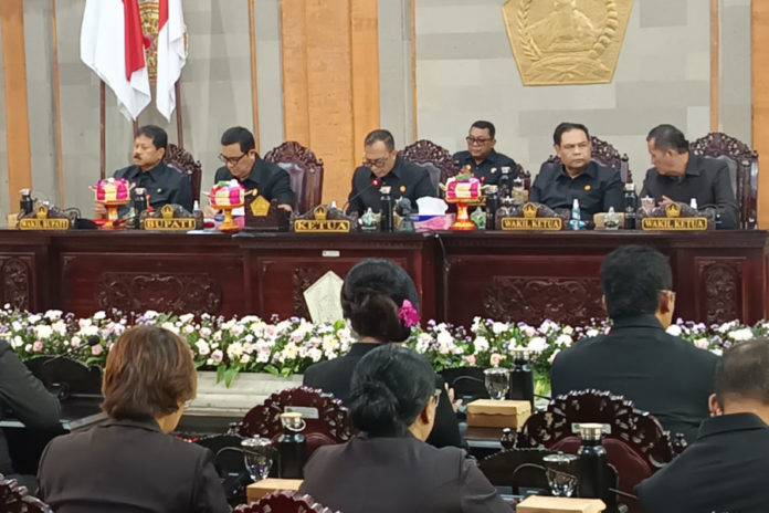 TABANAN, BALIPOST.com – Setelah melalui serangkaian pembahasan antara Badan Anggaran (Banggar) DPRD dan Tim Anggaran Pemerintah Daerah (TAPD), eksekutif dan legislatif Tabanan akhirnya menyepakati Kebijakan Umum Anggaran dan Prioritas Plafon Anggaran Sementara (KUA-PPAS) Tahun Anggaran 2026. Penandatanganan kesepakatan dilakukan oleh Bupati Tabanan I Komang Gede Sanjaya, dan Pimpinan DPRD Tabanan dalam rapat paripurna di Gedung DPRD, Selasa (7/10).