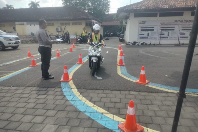 Tes praktek SIM yang digelar di Polres Jembrana. Masyarakat pemohon SIM bisa lebih cepat sesuai jadwal tanpa antre dengan mendaftar digital. (BP/Olo)