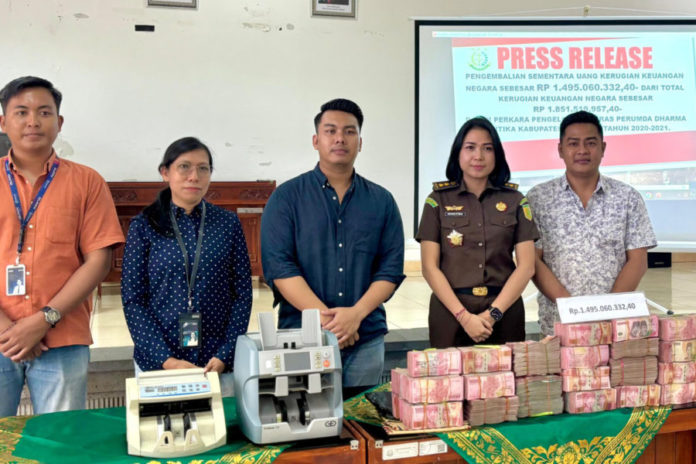TABANAN, BALIPOST.com – Kejaksaan Negeri (Kejari) Tabanan menerima pengembalian uang negara dalam perkara dugaan penyimpangan pengelolaan beras di Perumda Dharma Santhika (PDDS) Tabanan tahun 2020 hingga 2021. Jumlah uang yang dikembalikan mencapai Rp 1,49 miliar lebih.