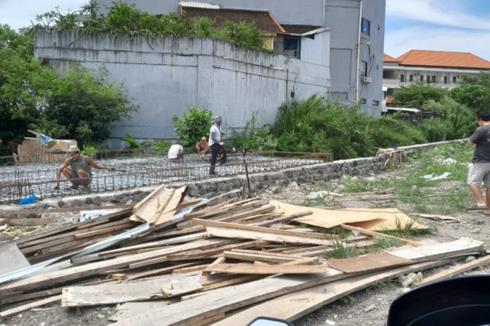 DENPASAR, BALIPOST.com – Sebuah struktur beton bertulang setengah kering tampak membentang di atas aliran sungai di daerah Jalan Teuku Umar Barat. Pembangunan ini menjadi pertanyaan terkait perijinannya, mengingat berada di Daerah Aliran Sungai (DAS) yang mana saat ini tengah ditata dari maraknya bangunan di bantaran sungai.