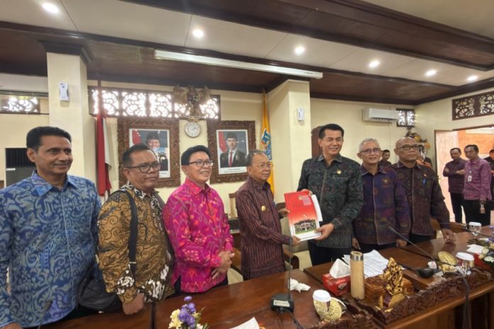 Tim Pansus Tata Ruang, Aset, dan Perizinan (TRAP) DPRD Bali menyerahkan surat rekomendasi terkait tindak lanjut pelanggaran lift kaca dan bungee jumping di Extreme Park Bali di Kelingking Beach, Nusa Penida kepada Gubernur Bali, di Kantor DPRD Bali, Selasa (11/11).