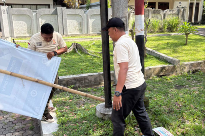 Satpol PP Denpasar tertibkan puluhan baliho dan spanduk di sejumlah ruas jalan Kota Denpasar. (BP/istimewa)