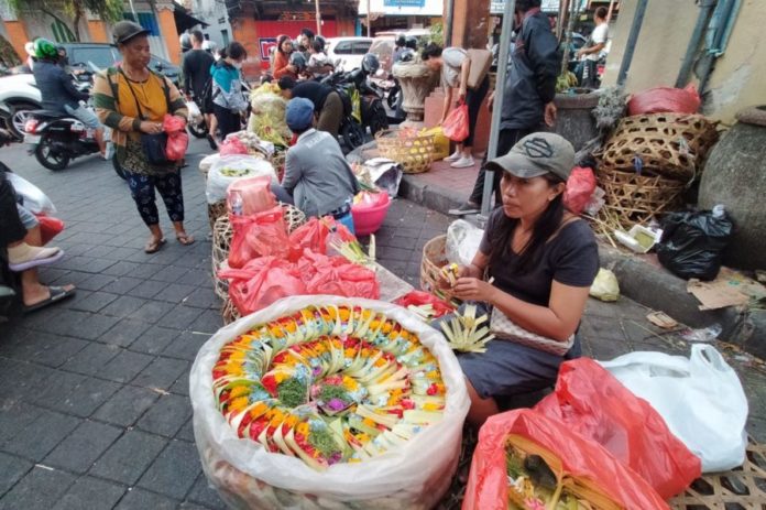 “Itu untungnya sudah tipis sekali, canang dijual Rp1.000 per biji. Harga ceper saja Rp500 per biji, belum bunganya juga naik,” katanya.