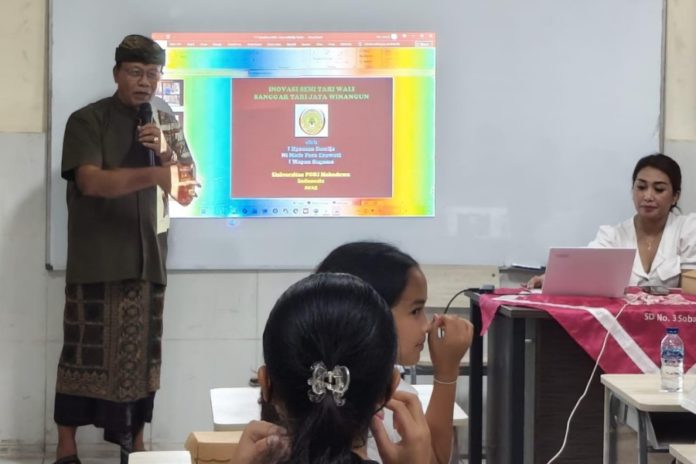 Dosen Universitas PGRI Mahadewa Indonesia (UPMI) Bali Prof. Dr. Drs. I Nyoman Suwija, H.Hum. saat melakukan program pengabdian masyarakat pada Sanggar Tari Jata Winangun, di Desa Sobangan, Mengwi, Badung. (BP/Istimewa)