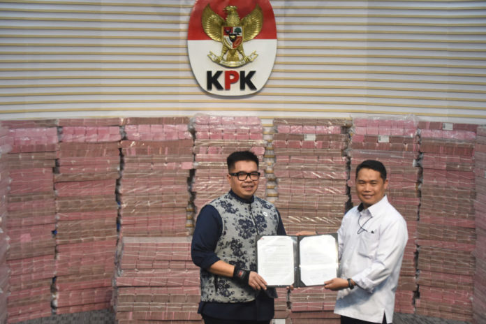 JAKARTA, BALIPOST.com – Komisi Pemberantasan Korupsi (KPK) menyerahkan barang rampasan senilai Rp883.038.394.268 atau sekitar Rp883 miliar dan enam unit efek kepada PT Taspen (Persero).