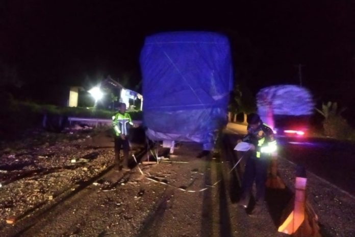 “Truk tersebut kemudian menabrak truk nopol B 9155 SYN yang saat itu sedang parkir di bahu jalan sebelah kiri,” tambahnya.