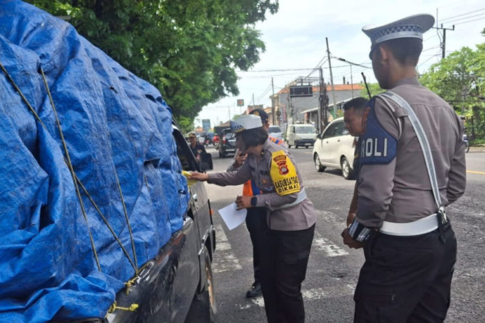 Pemeriksaan sekaligus sosialisasi bahaya ODOL di Jalan Bypass Ir. Soekarno, Dauh Peken, Senin (24/11). (BP/istimewa)
