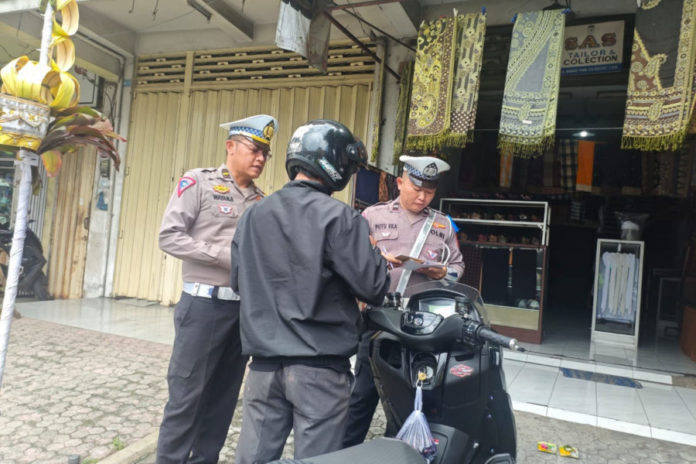 Petugas kepolisian memeriksa surat kendaraan saat pelaksanaan Operasi Zebra Agung 2025 di wilayah Tabanan. (BP/istimewa)
