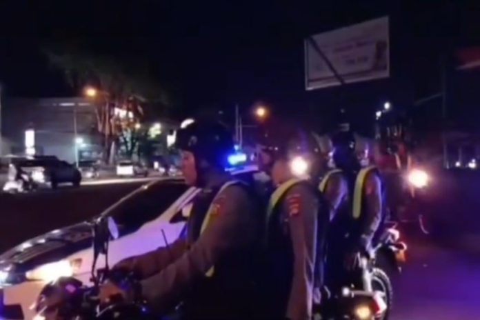 Personel Satsamapta Polresta Denpasar melaksanakan patroli untuk mencegah gangguan kamtibmas. (BP/istimewa)