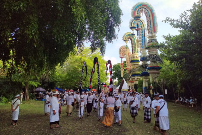 DENPASAR, BALIPOST.com – Piodalan di Pura Dalem Sakenan yang berlangsung setiap Sabtu, Kliwon Wuku Kuningan atau bertepatan dengan hari raya Kuningan. Tahun ini rangkaiannya berlangsung selama 4 hari yakni dari Sabtu 29 November hingga Selasa 2 Desember 2025.