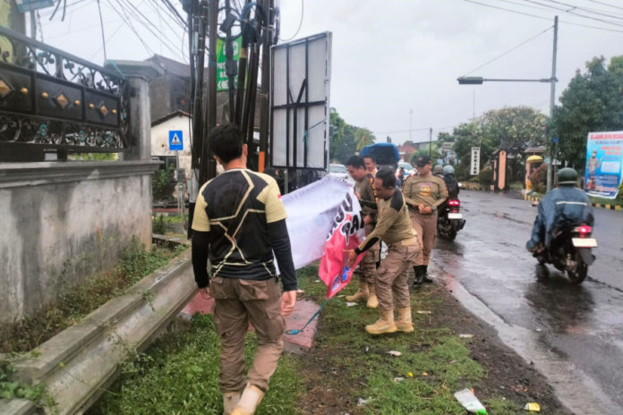 Penertiban Banner dan Spanduk di Sejumlah Titik. (BP/Yud)