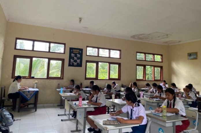 Pelaksanaan Sumatif Akhir Semester di salah satu sekolah di Kabupaten Gianyar. (BP/istimewa)