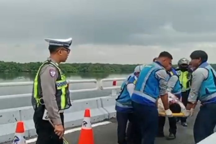 MANGUPURA, BALIPOST.com – Seorang warga negara asing (WNA) berinisial TS mengalami lakalantas di Jalan Tol Bali Mandara, Kuta Selatan (Kutsel), Rabu (3/12). Akibat kejadian itu korban asal Uzbekistan ini diduga mengalami cedera kepala berat (CKB).
