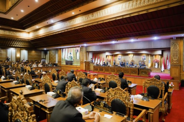 Suasana rapat paripurna DPRD Badung belum lama ini yang beragendakan kesepakatan tentang tiga dokumen ranperda. (BP/istimewa)