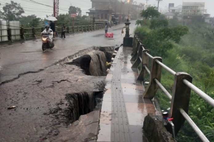 Jalan yang jebol memiliki lebar sekitar 2 meter dan tinggi 5 meter.