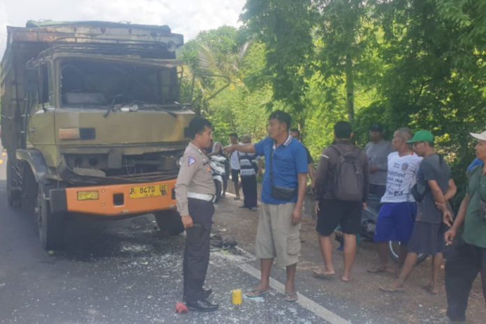 Kecelakaan melibatkan sepeda motor R3 Viar nopol P-3022-QAG yang dikendarai Muhhamad Rifa’i (59), warga Desa Sumberkima, truk Mitsubishi R6 nopol P-8470-UE yang dikemudikan Kusno (60), asal Situbondo, serta truk DYNA R6 nopol DK-8027-FN yang dikemudikan I Made Agus Setiawan (28), asal Desa Pergung, Jembrana.