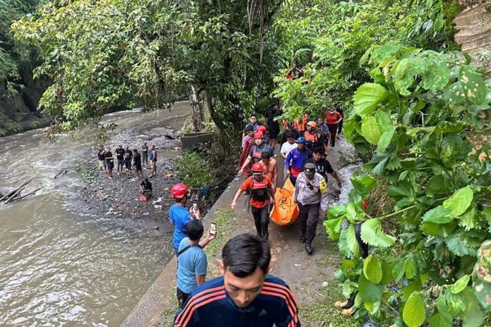Sekitar pukul 16.43 WITA dilakukan upaya pencarian korban oleh tim gabungan Basarnas, BPBD Badung, Satpolairud Polres Badung dan Polsek Abiansemal. Setelah dilakukan pencarian akhirnya pukul 18.05 WITA, korban ditemukan meninggal dan jasadnya dibawa ke RSU Mangusada Kapal dengan menggunakan ambulans.