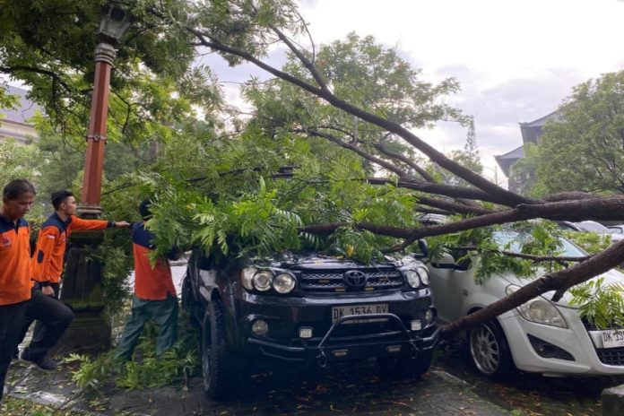 BMKG mengimbau masyarakat tetap waspada terhadap potensi bencana hidrometeorologi, terutama saat hujan lebat disertai angin kencang. Warga juga diingatkan untuk menghindari parkir kendaraan di bawah pohon besar guna meminimalkan risiko serupa. (Parwata/balipost)